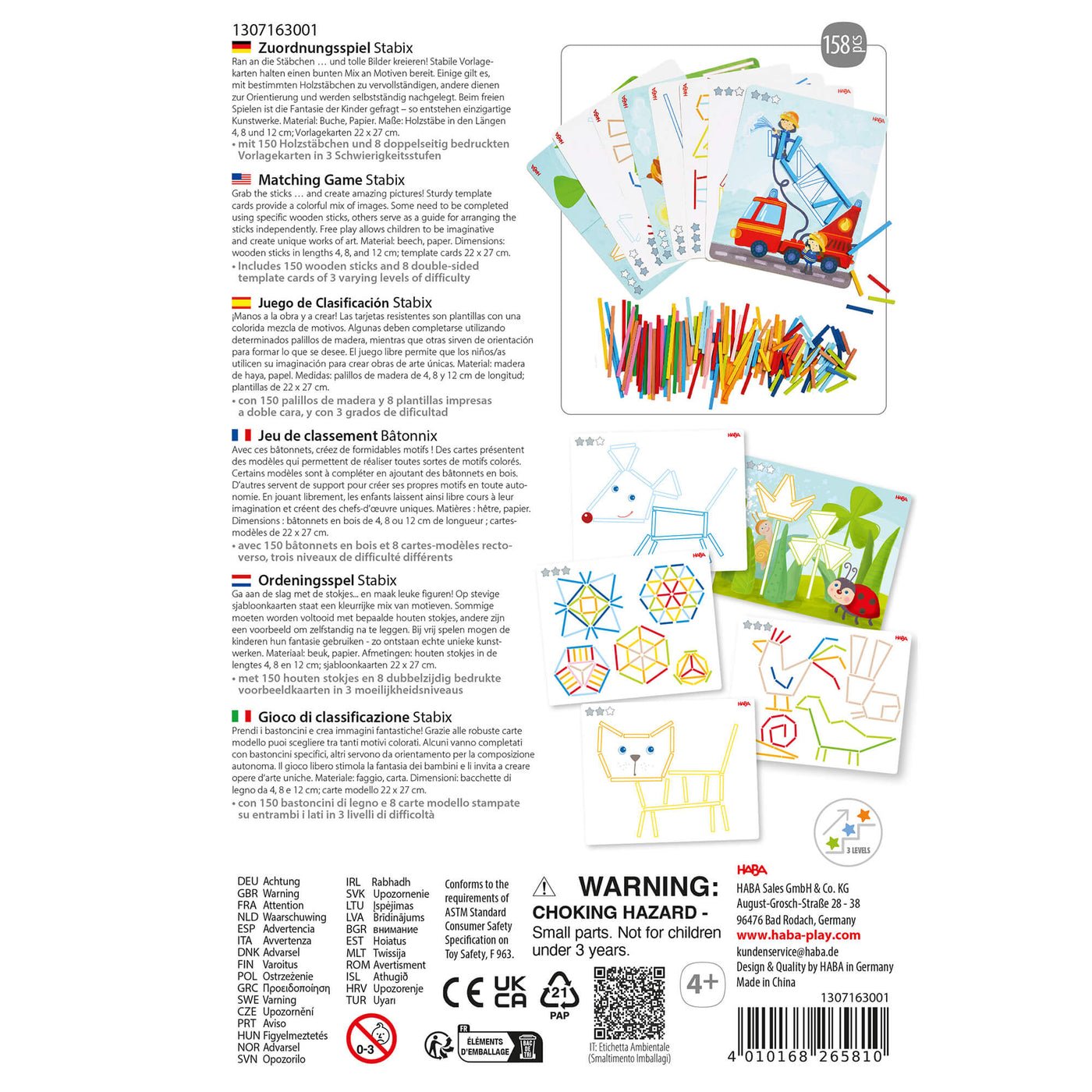 Match, and imagine, one stick at a time! Grab your sticks and let creativity take the lead. Stabix Wooden Arranging and Matching Game is a vibrant, open-ended activity that encourages young artists to explore shape, color, and spatial design through guided patterns or imaginative free play. With 150 colorful wooden sti